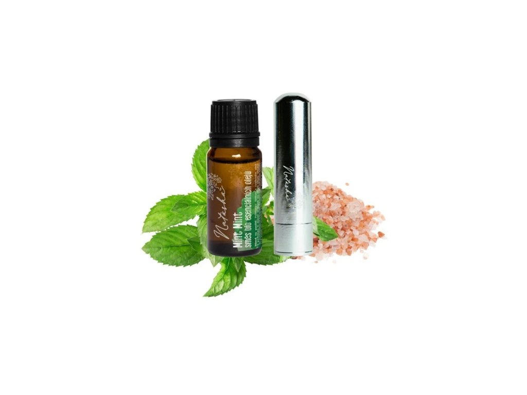 Natasha Aroma sada inhalačná – MINT MINT je aromaterapeutická sada navrhnutá tak, aby ste si mohli užiť liečivú vôňu esenciálnych olejov kdekoľvek a kedykoľvek. Sada obsahuje 10 ml bio esenciálnych olejov a znovuplniteľný kovový inhalátor naplnený himalájskou soľou, ktorá pôsobí ako nosič a stabilizátor vône.
