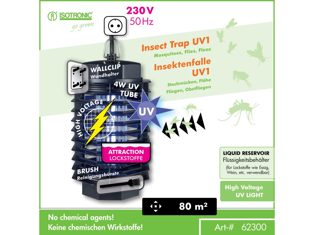 ISOTRONIC elektrický lapač hmyzu spoľahlivo zbaví domácnosť komárov, múch a iného lietajúceho hmyzu. Využíva UV svetlo, ktoré priťahuje hmyz a následne ho zneškodní elektrickým výbojom. Hmyz po kontakte padne do zbernej nádobky, ktorú stačí pravidelne vyprázdniť. Toto riešenie neobsahuje chemikálie, preto je bezpečné pre domácnosť, deti a domáce zvieratá.